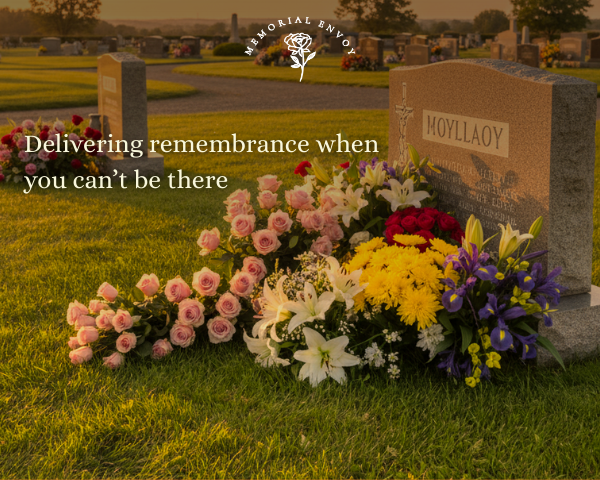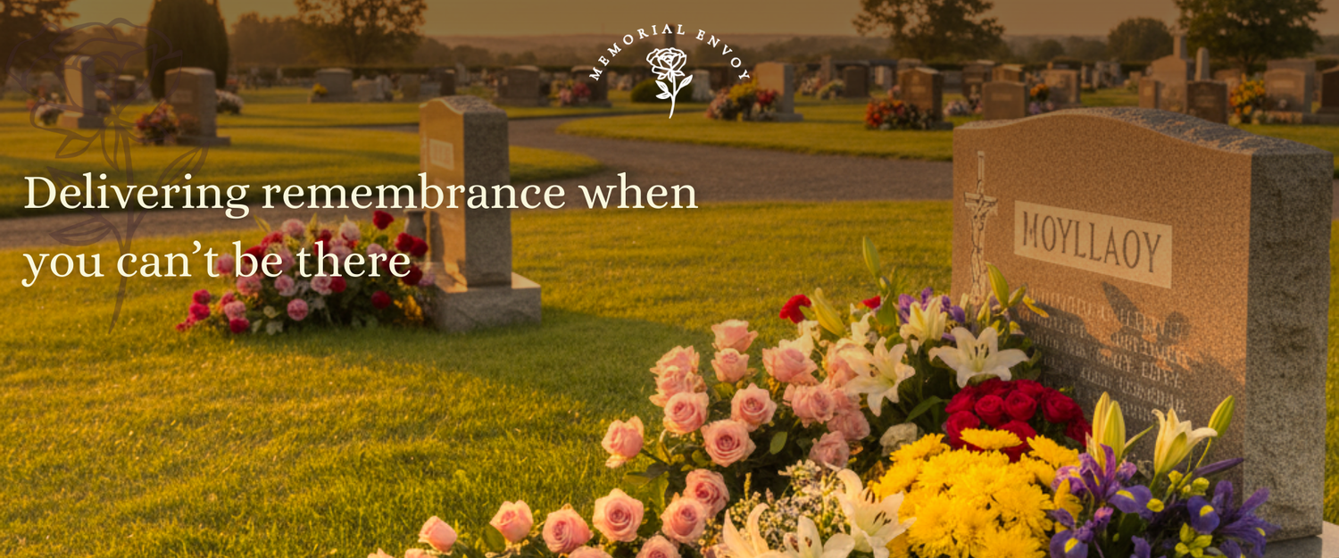 Memorial envoys to Chicago area cemeteries will have fresh flower delivery, contain reflective music, location of the grave, pictures of loved one’s grave site, custom reflection and images of the overall cemetery where they are laid to rest.